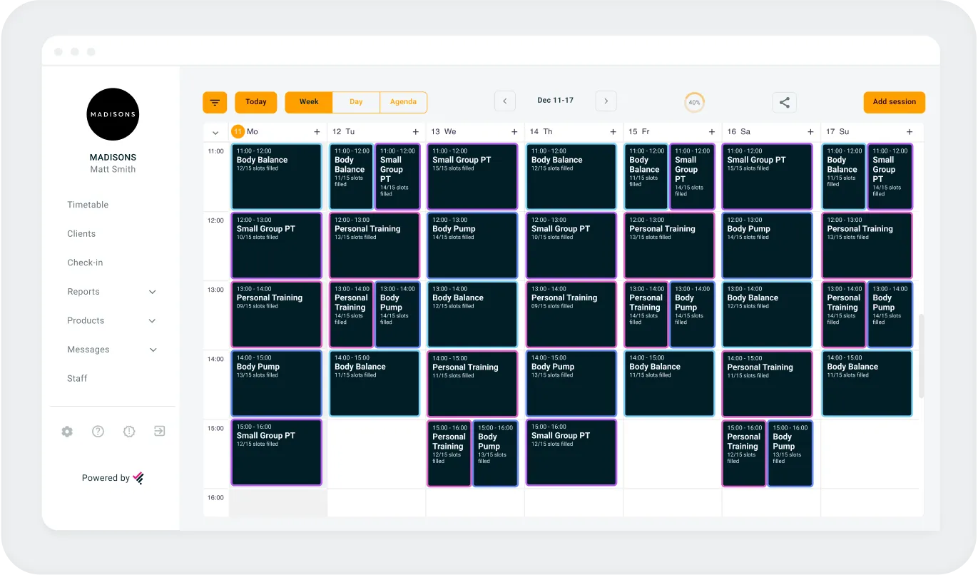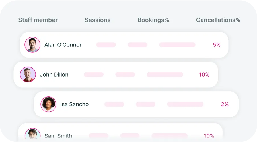 Streamline your gym and fitness studio operations by easily allocating sessions to gym staff and tracking their performance. Ensure efficient team management while maintaining a clear business overview.